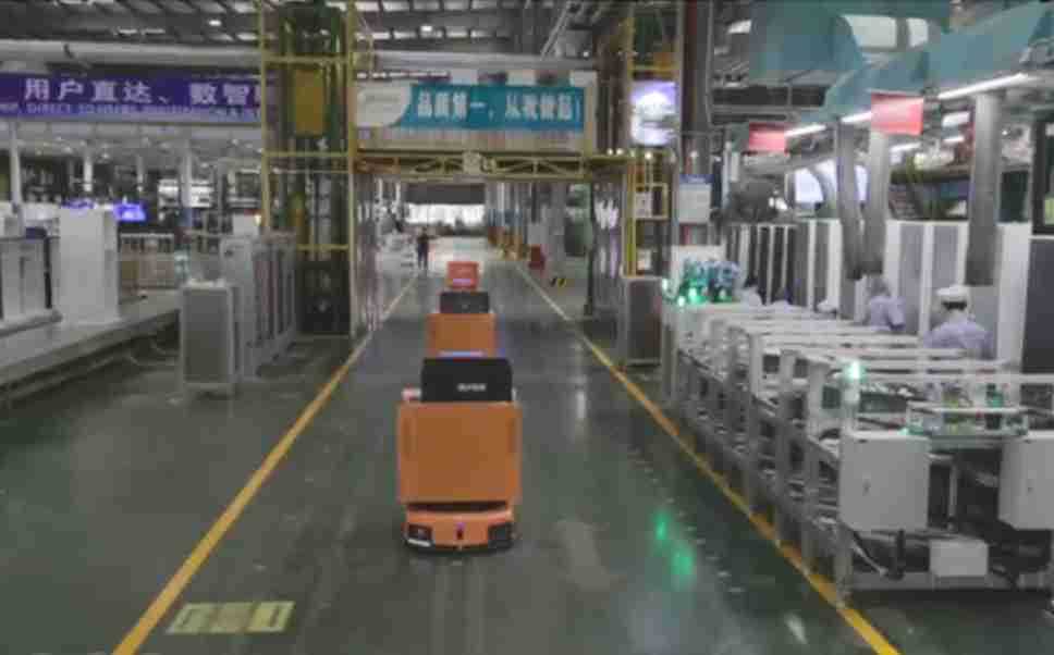 为车载冰箱物流配送打造的智能解决方案,,,,包含产中物流通过潜伏举升AMR搬运至线边,,,产后成品物流智能仓储,,,流程包含产中物流智能齐套入库,,,线边安灯叫料AMR智能配送至线边,,成品入库、、、、出库,,,通过无人堆高车机器人,,,,智能仓储管理替代人工作业管理,,,实现更高存储、、、、更高效率、、更具柔性化的解决方案。。。